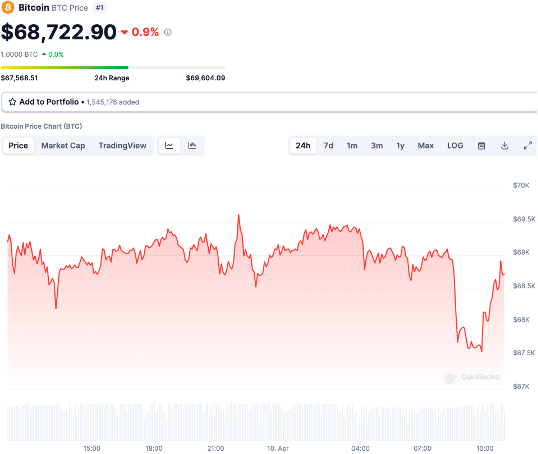 BTC: 日内跌幅0.8%。目前在各平台24h交易量总合约29.09B。现价:68,722.90