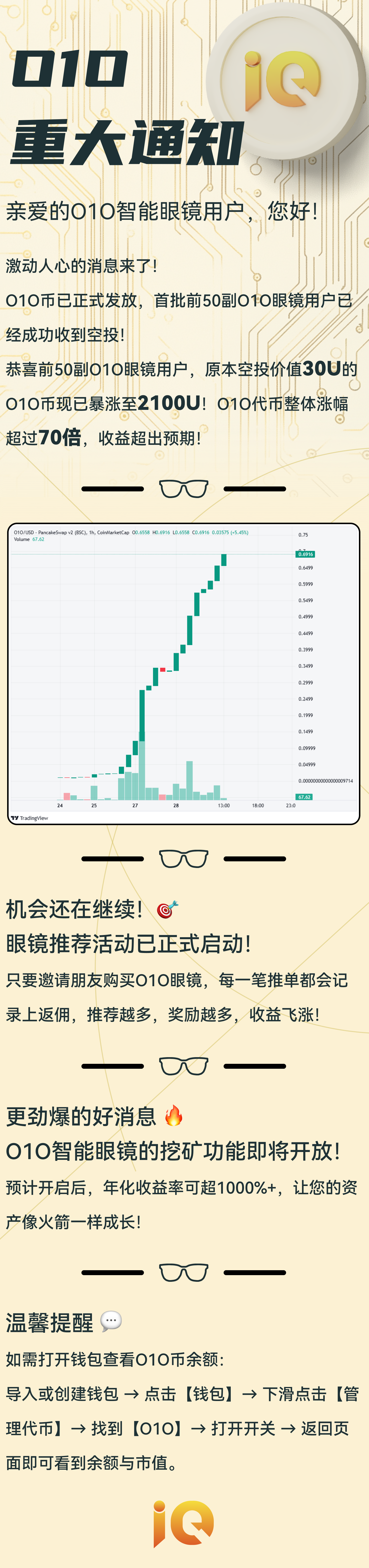 O1O智能眼镜 | 重大通知 —- O1O币已发放,开启爆发冲刺!